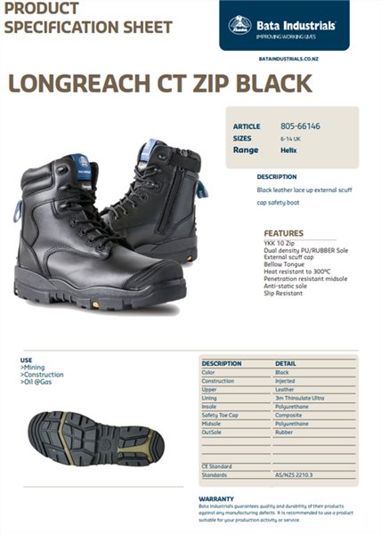 Black leather lace up external scuff cap safety boot- YKK 10 Zip
